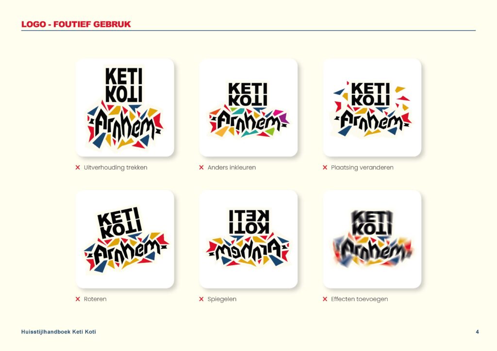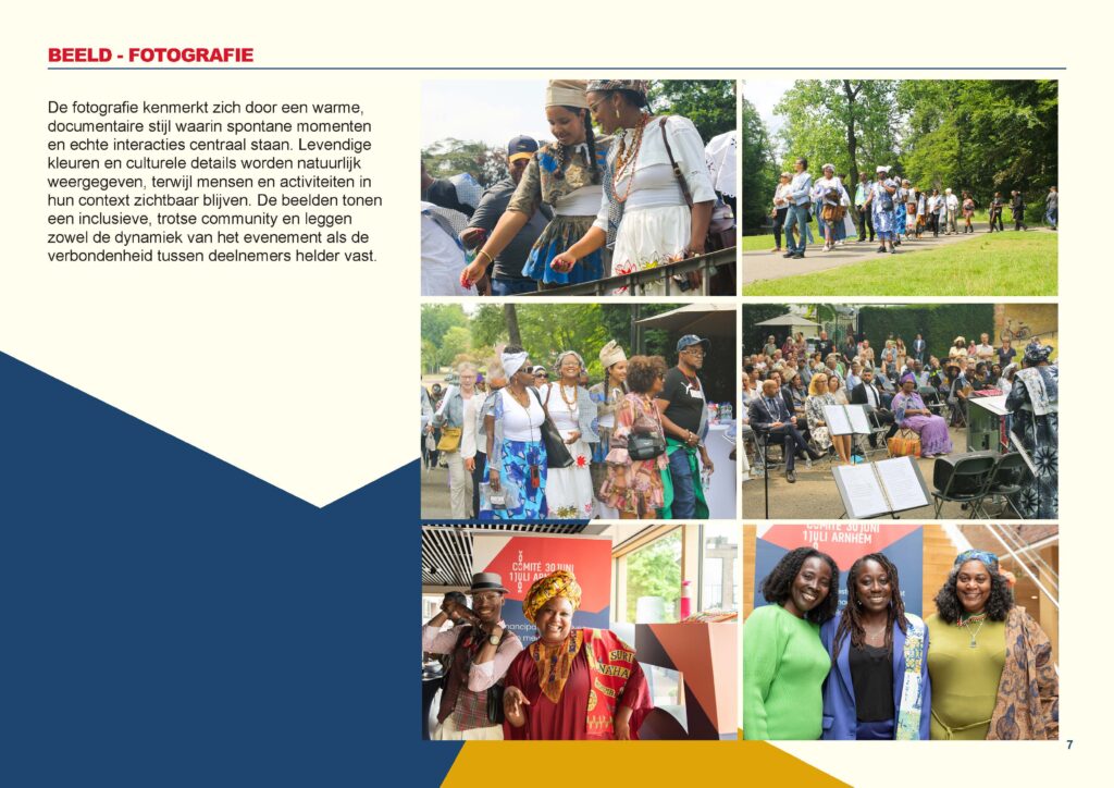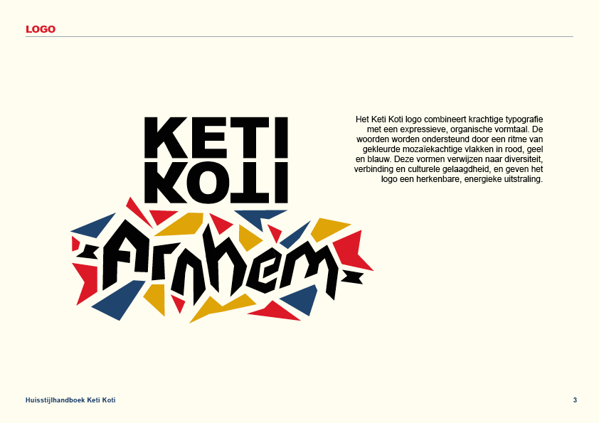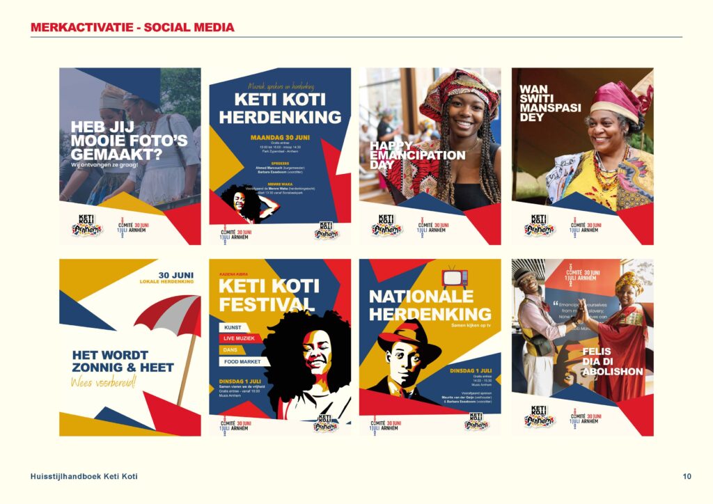 Voor Keti Koti Arnhem heb ik een huisstijlhandboek ontwikkeld. Hierin legde ik richtlijnen vast voor het gebruik van kleuren, typografie, logo’s en visuele elementen. Het doel was om de huisstijl duidelijk vast te leggen zodat iedereen het in een oogopslag duidelijk kan zien.